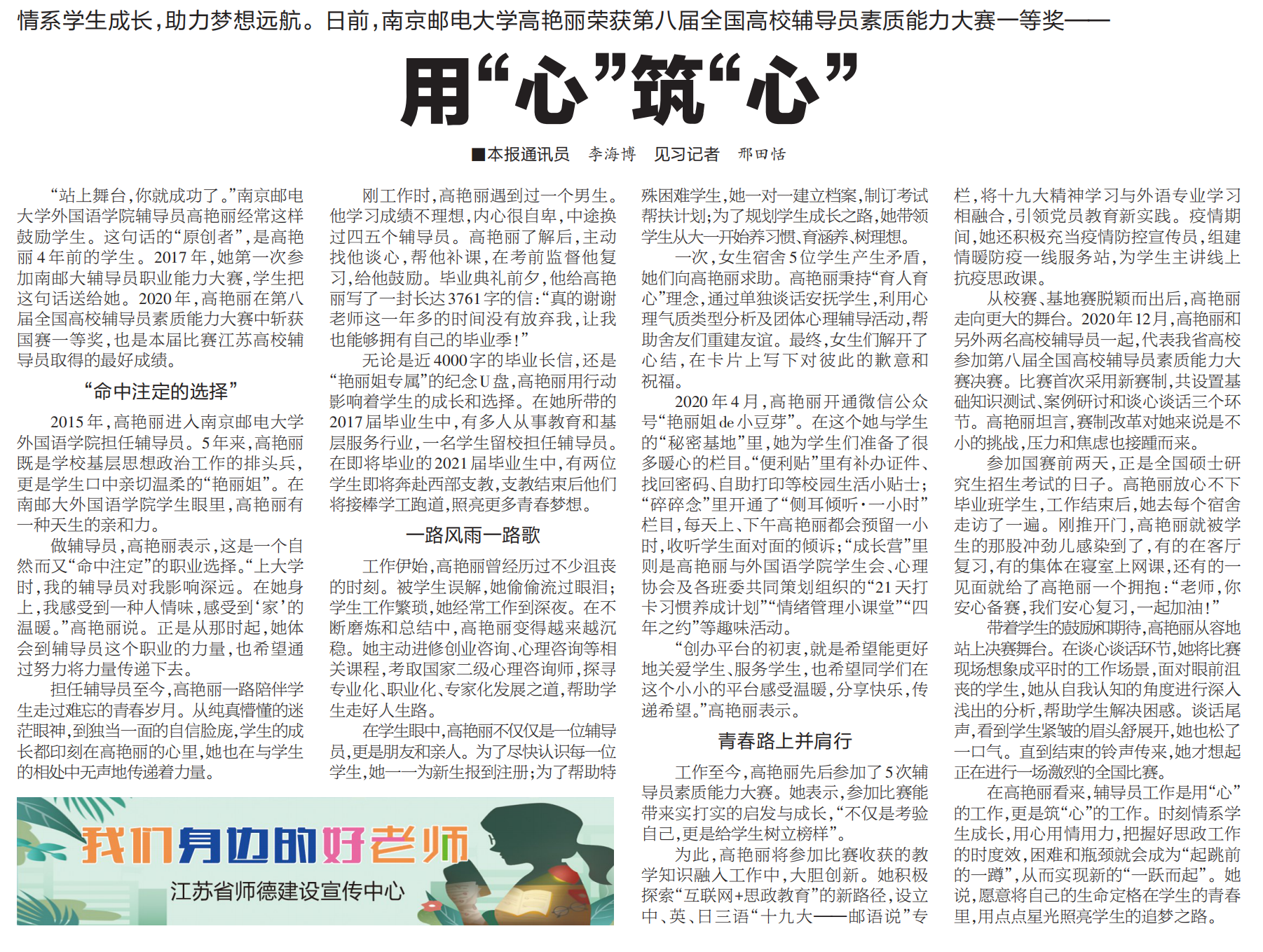 【江蘇教育報】用“心”筑“心”