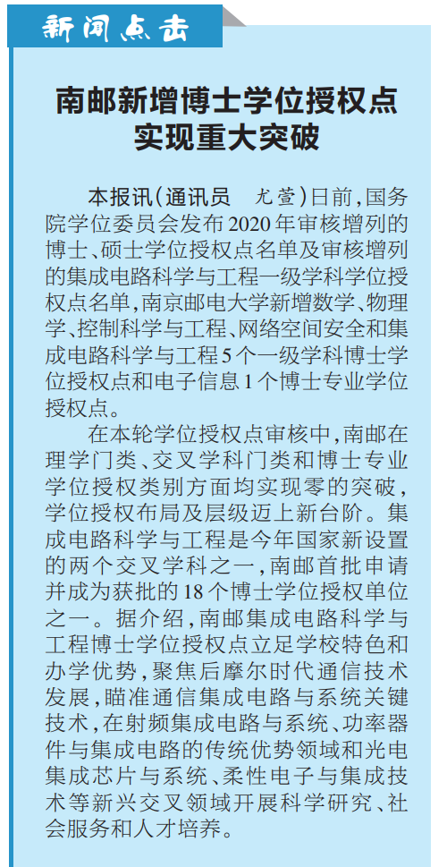 【江蘇教育報】南郵新增博士學位授權點 實現重大突破