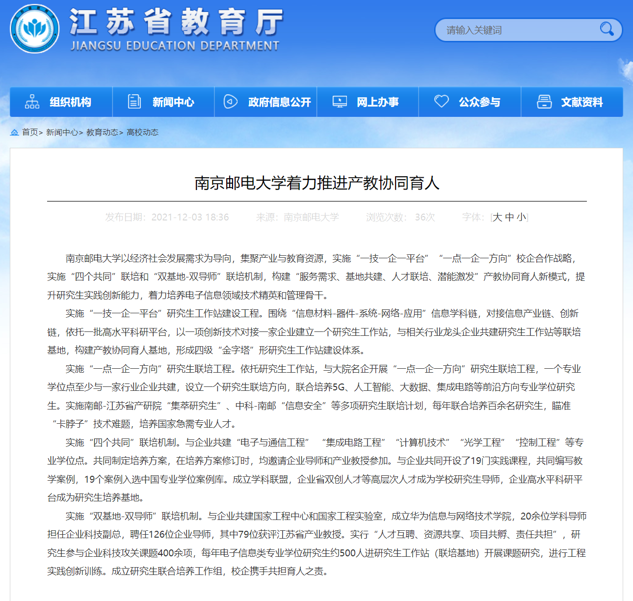 【省教育廳官網(wǎng)】南京郵電大學著力推進產(chǎn)教協(xié)同育人