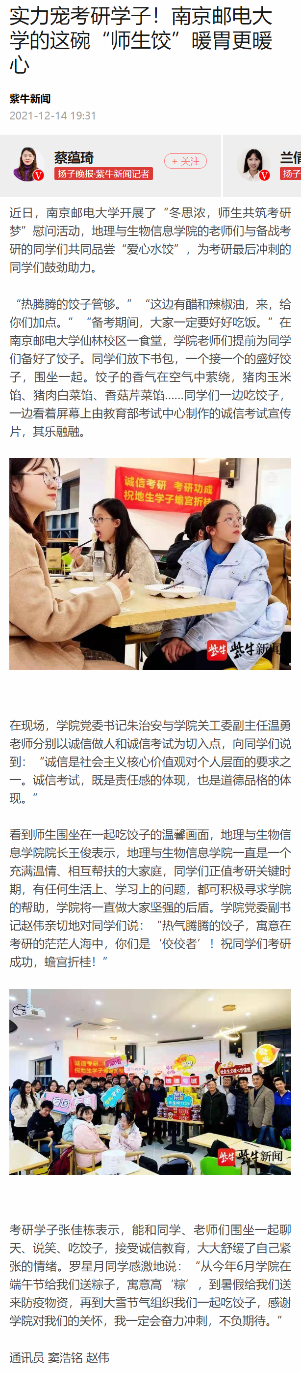 【揚子晚報客戶端】實力寵考研學子!南京郵電大學的這碗“師生餃”暖胃更暖心