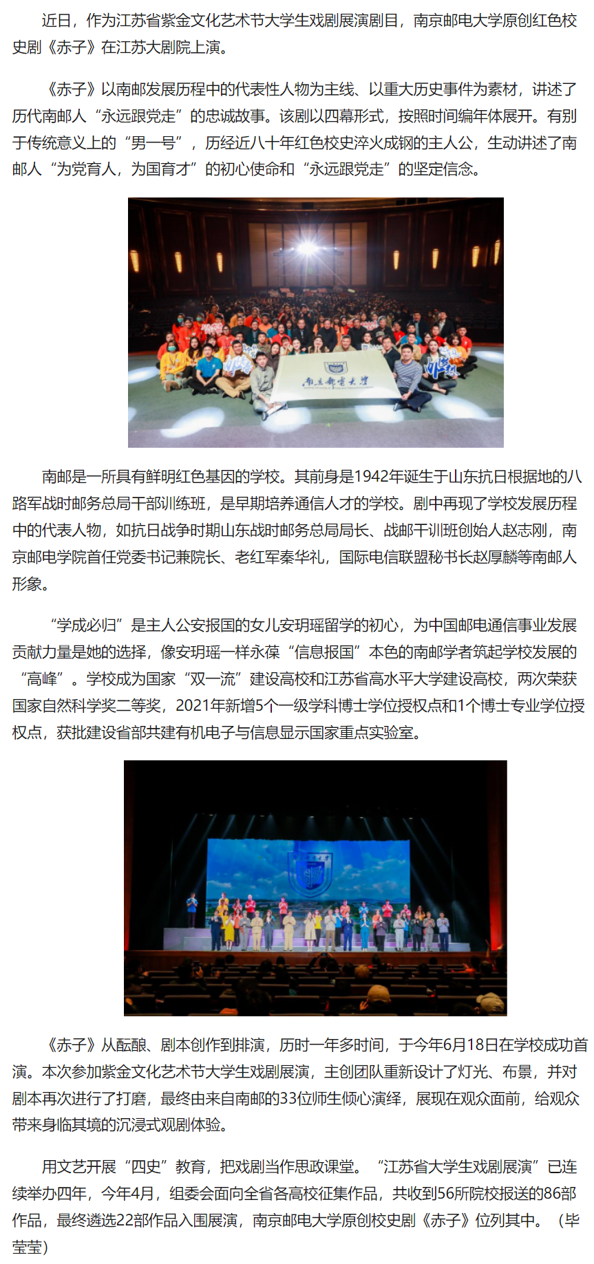【中國(guó)江蘇網(wǎng)】南郵原創(chuàng)紅色校史劇《赤子》亮相江蘇省紫金文化藝術(shù)節(jié)