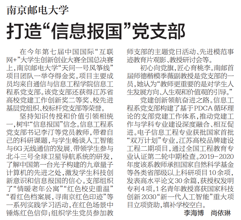 【新華日報(bào)】南京郵電大學(xué) 打造“信息報(bào)國”黨支部