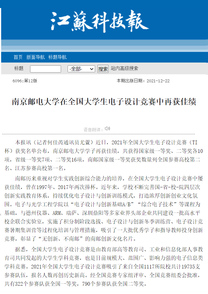 【江蘇科技報】南京郵電大學在全國大學生電子設計競賽中再獲佳績