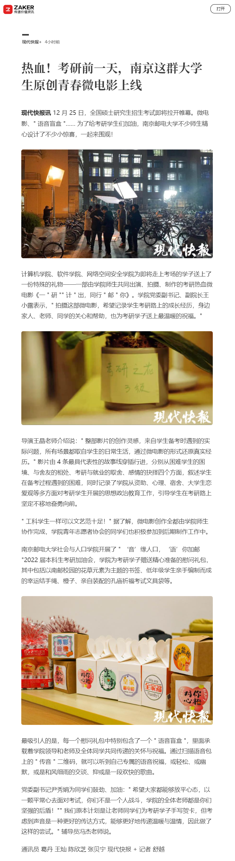 【現代快報全媒體】熱血!考研前一天,南京這群大學生原創青春微電影上線
