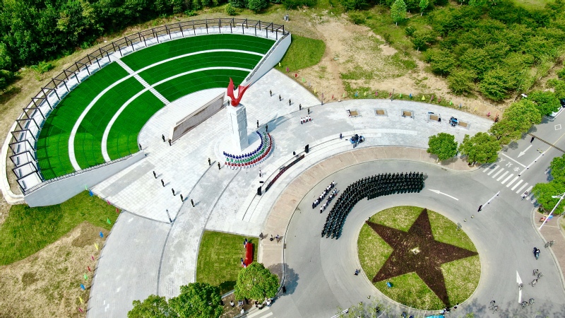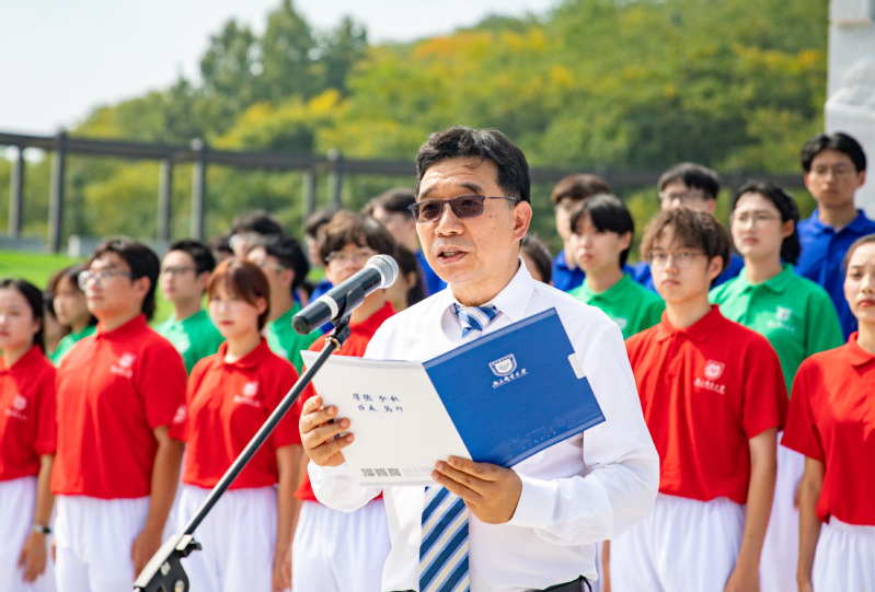 戰(zhàn)郵廣場的圖騰柱下,學生代表齊聲朗誦《戰(zhàn)郵廣場賦》,傳承學校80年辦學歷程中凝結(jié)的紅色血脈和奮斗精神。