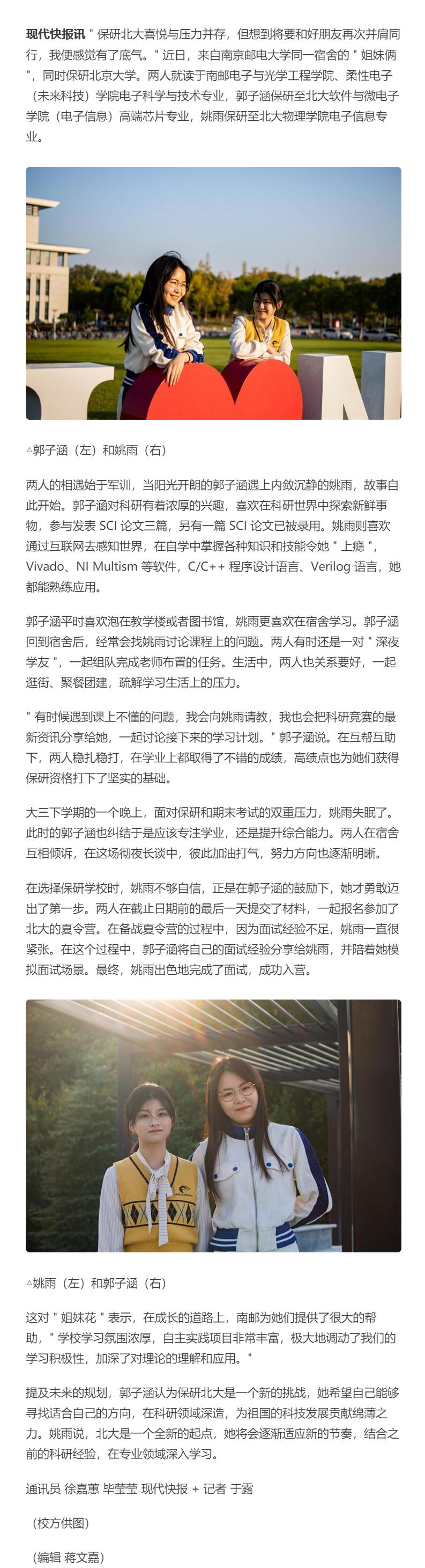 【現代快報全媒體】并肩同行,南郵同宿舍“姐妹花”雙雙保研北大