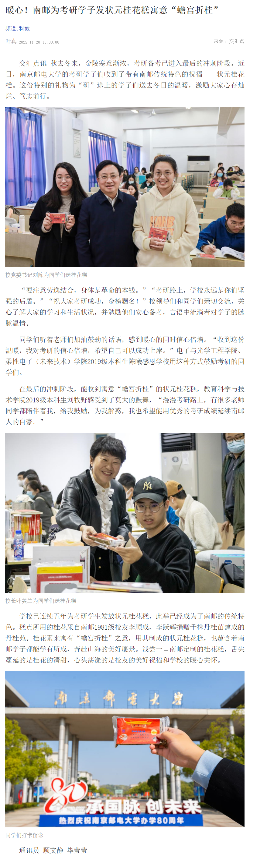 【新華日報客戶端】暖心!南郵為考研學子發狀元桂花糕寓意“蟾宮折桂”