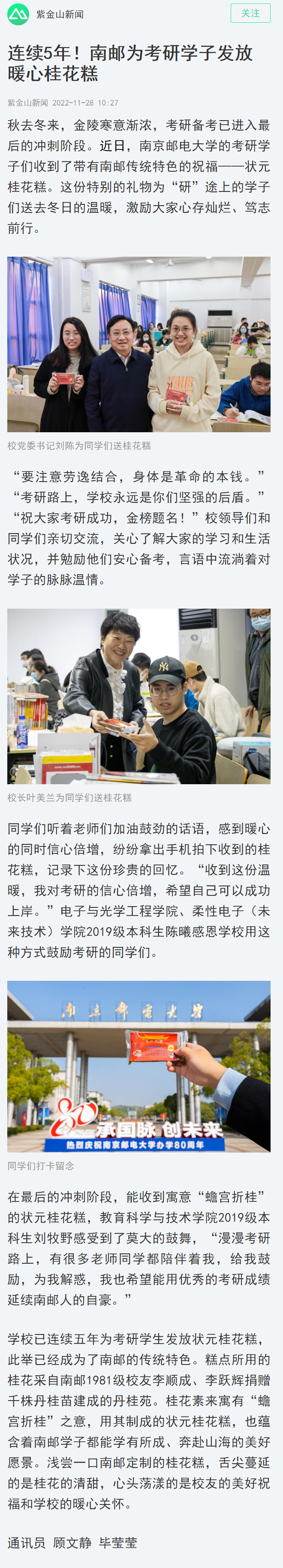 【南京日報客戶端】連續5年!南郵為考研學子發放暖心桂花糕