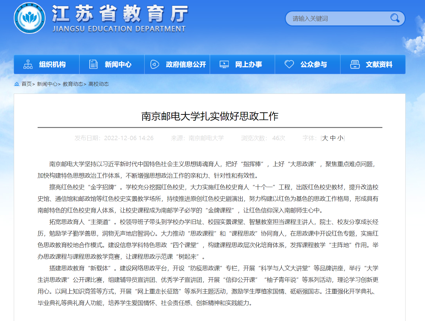 【省教育廳官網】南京郵電大學扎實做好思政工作