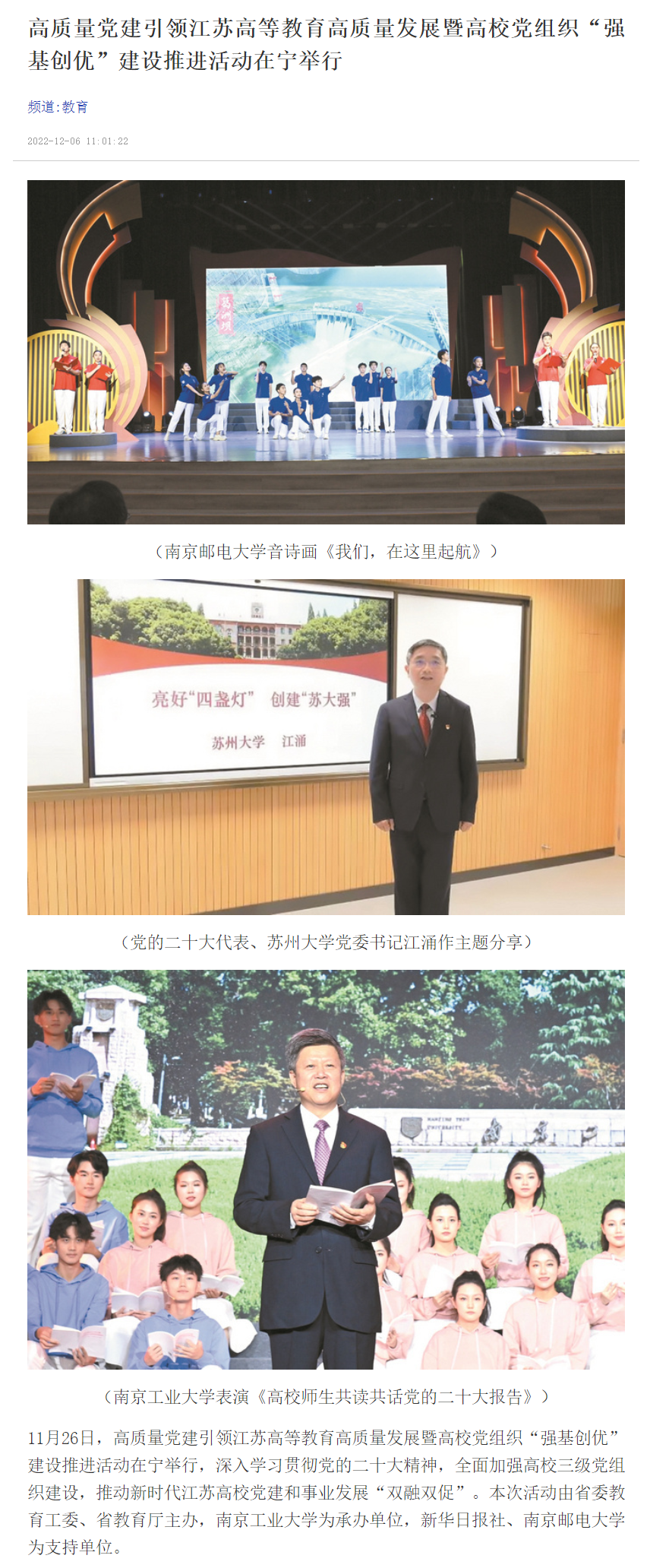 【新華日報(bào)客戶端】高質(zhì)量黨建引領(lǐng)江蘇高等教育高質(zhì)量發(fā)展暨高校黨組織“強(qiáng)基創(chuàng)優(yōu)”建設(shè)推進(jìn)活動(dòng)在寧舉行
