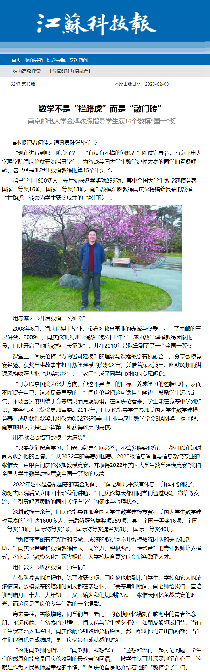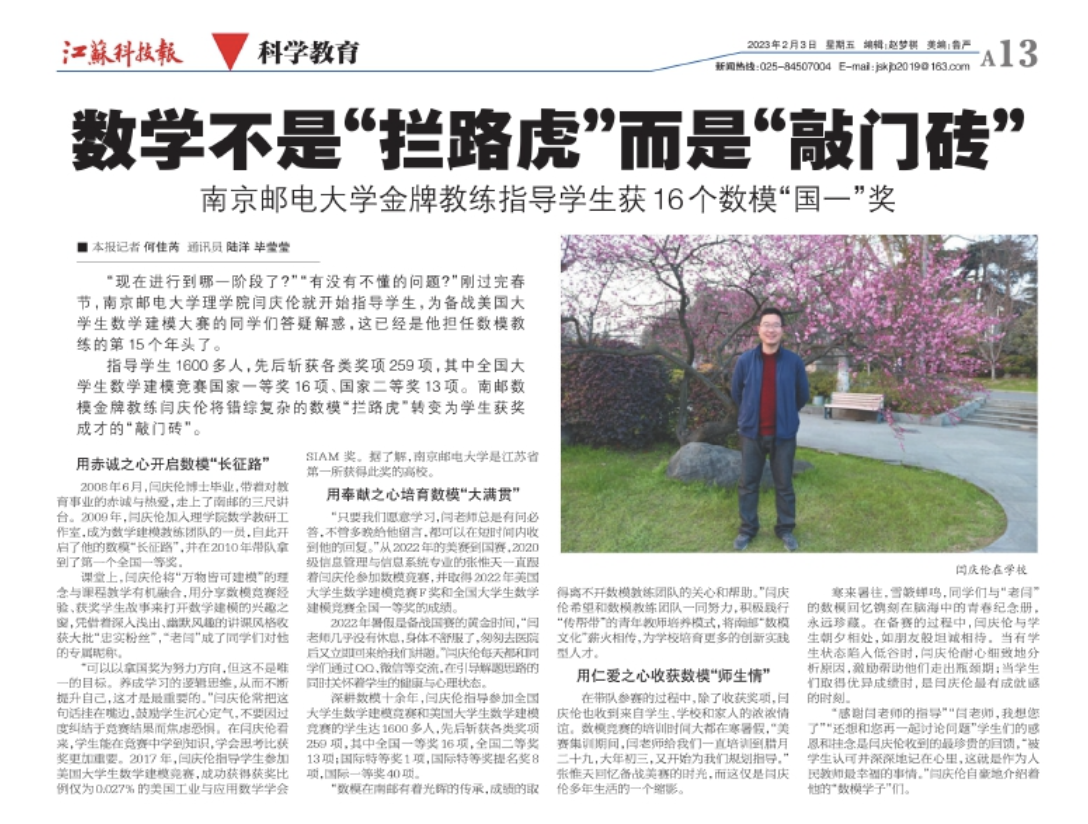 【江蘇科技報】數學不是“攔路虎”而是“敲門磚”