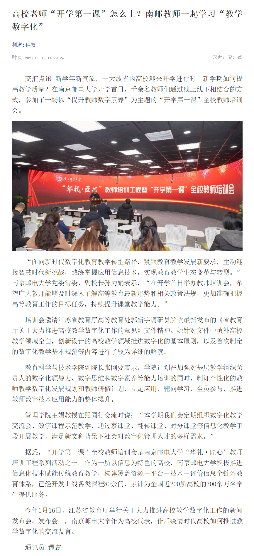 【新華日報客戶端】高校老師“開學第一課”怎么上?南郵教師一起學習“教學數(shù)字化”