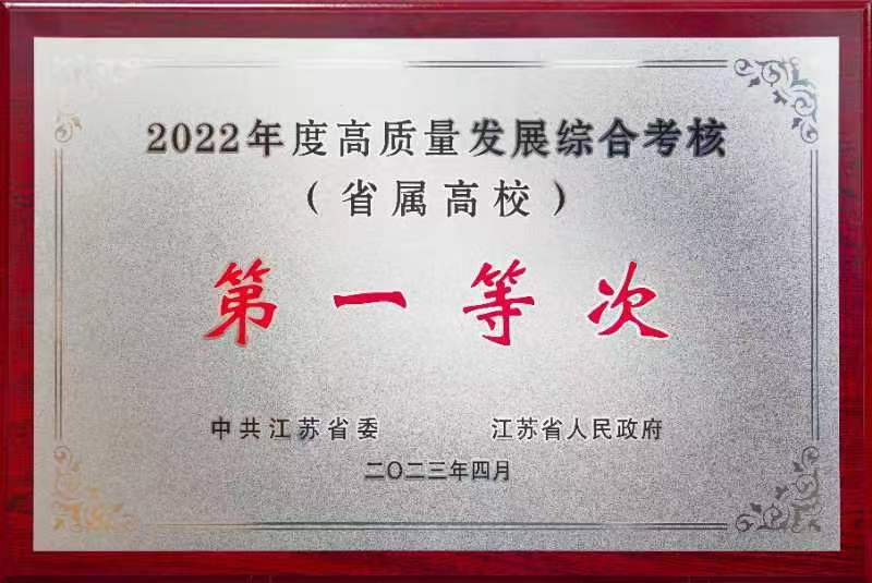 4月26日,江蘇省2022年度高質量發展總結表彰會議在南京召開,我校獲評省屬高校高質量發展綜合考核本科一類高校第一等次。