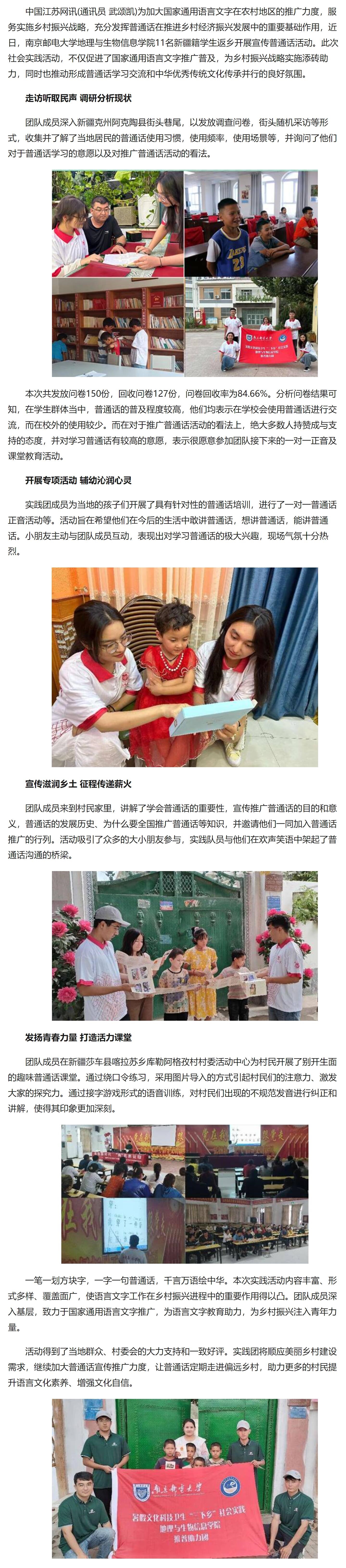 【中國江蘇網】書寫青春擔當!南郵“推普助力鄉村振興”實踐團走進新疆