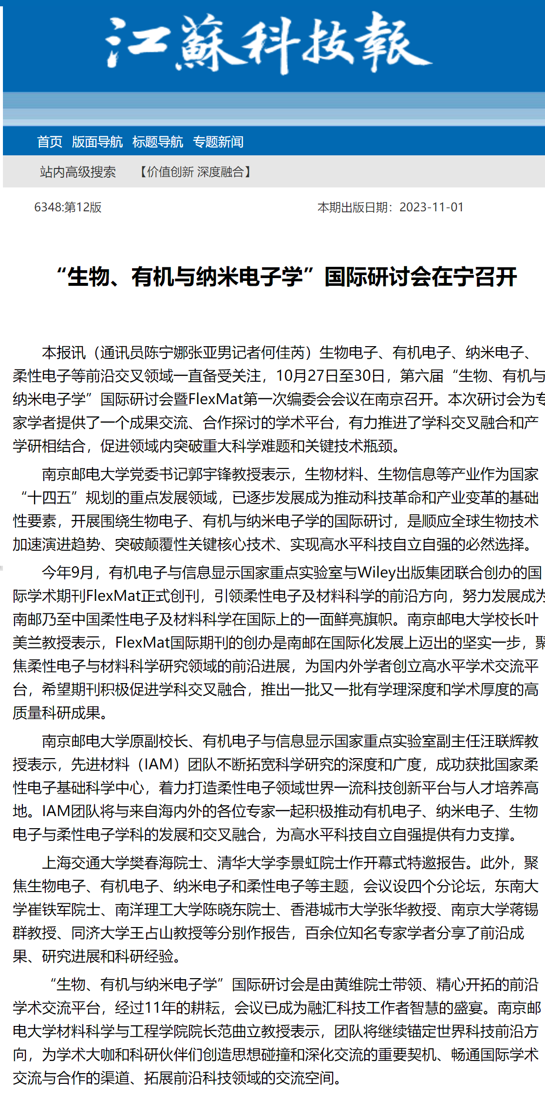 【江蘇科技報(bào)】“生物、有機(jī)與納米電子學(xué)”國(guó)際研討會(huì)在寧召開(kāi)