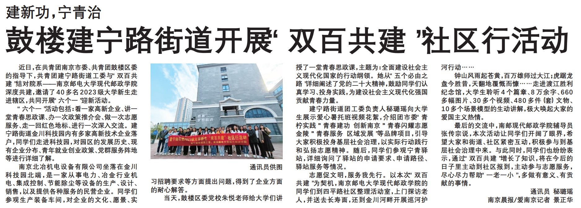 【南京晨報】鼓樓建寧路街道開展“雙百共建”社區行活動
