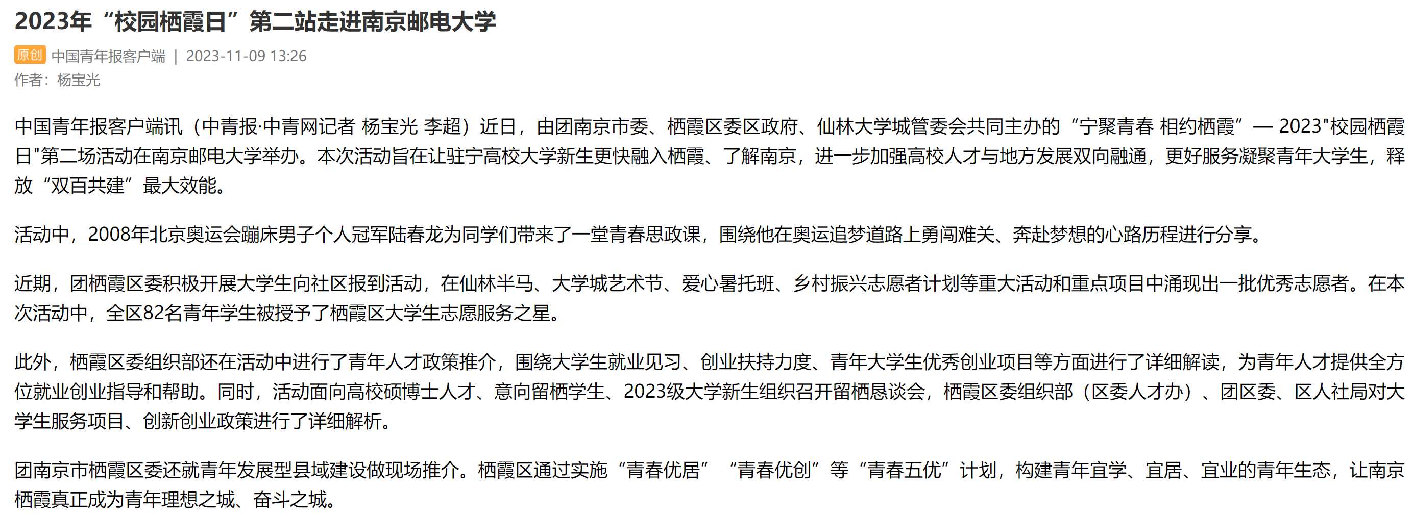 【中國青年報客戶端】2023年“校園棲霞日”第二站走進南京郵電大學