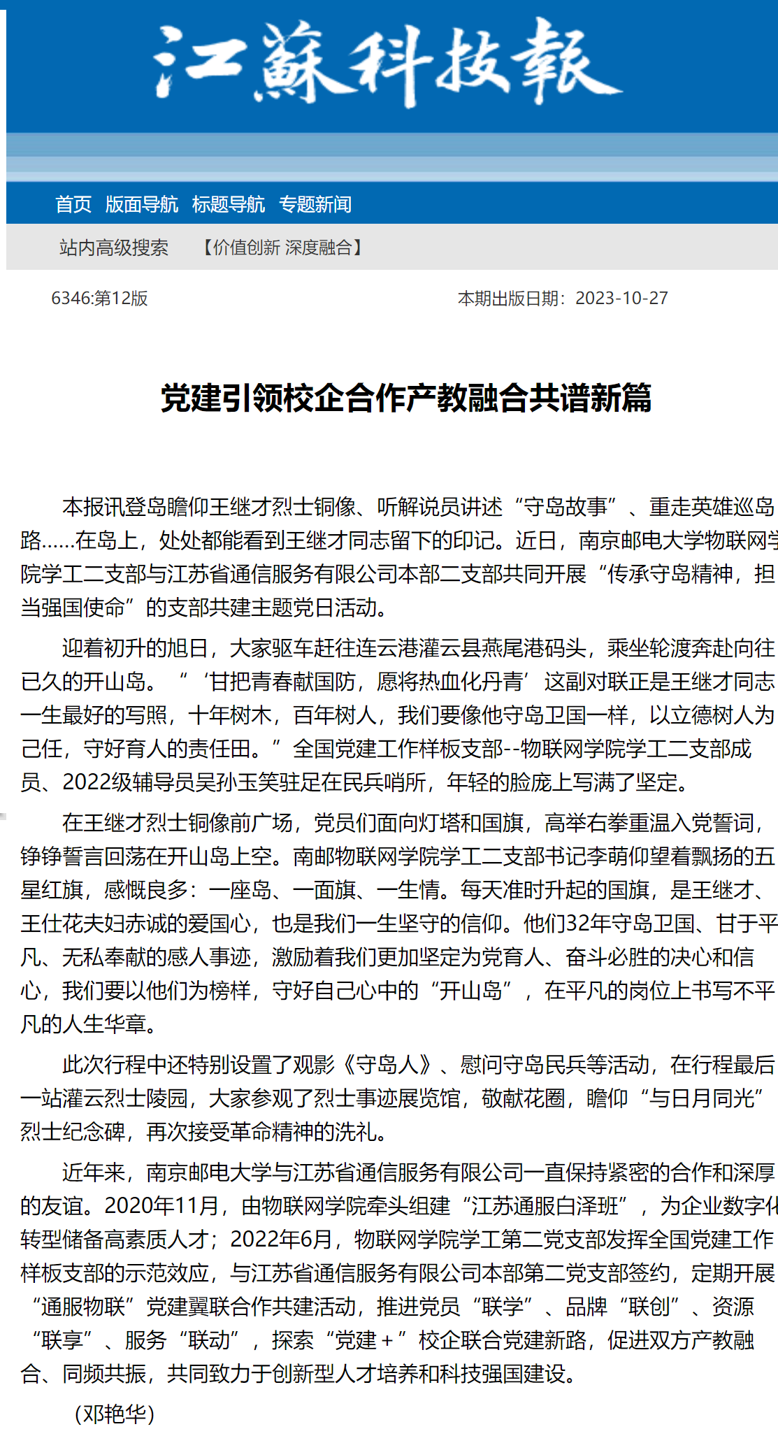 【江蘇科技報】黨建引領校企合作產(chǎn)教融合共譜新篇