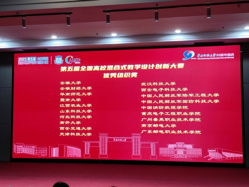 11月12日,2023年第五屆全國(guó)高校混合式教學(xué)設(shè)計(jì)創(chuàng)新大賽落下帷幕,計(jì)算機(jī)學(xué)院、軟件學(xué)院、網(wǎng)絡(luò)空間安全學(xué)院陳燕俐老師課程團(tuán)隊(duì)和管理學(xué)院徐俠老師課程團(tuán)隊(duì)榮獲全國(guó)一等獎(jiǎng),社會(huì)與人口學(xué)院周晶晶老師獲全國(guó)二等獎(jiǎng)、安榮榮老師獲全國(guó)三等獎(jiǎng),我校獲優(yōu)秀組織獎(jiǎng)。