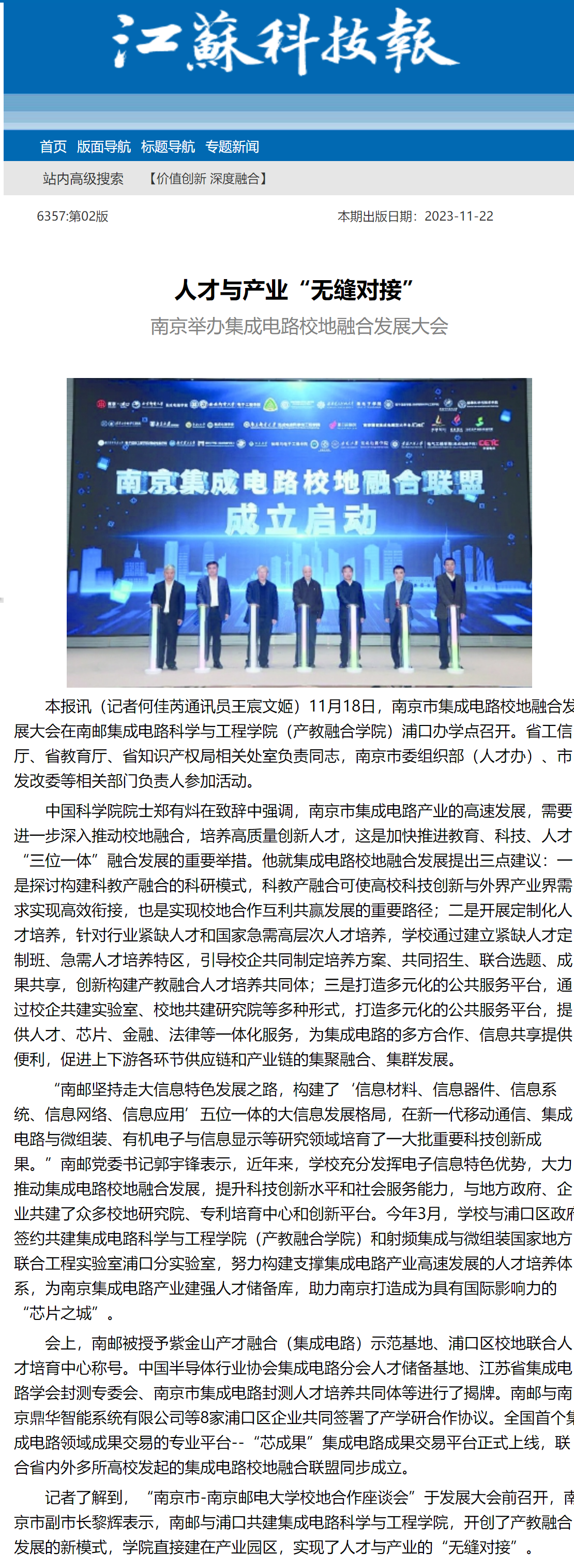 【江蘇科技報】人才與產業“無縫對接”南京舉辦集成電路校地融合發展大會