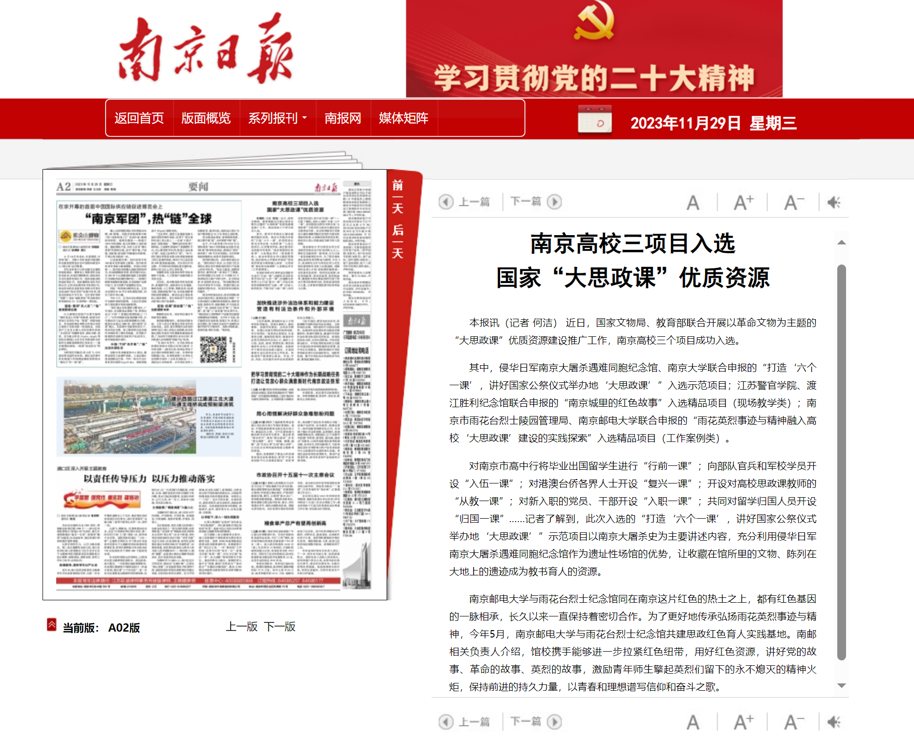 發(fā)布時(shí)間:2023-11-29 瀏覽次數(shù):1836 文章來(lái)源:2023年11月29日《南京日?qǐng)?bào)》A2版