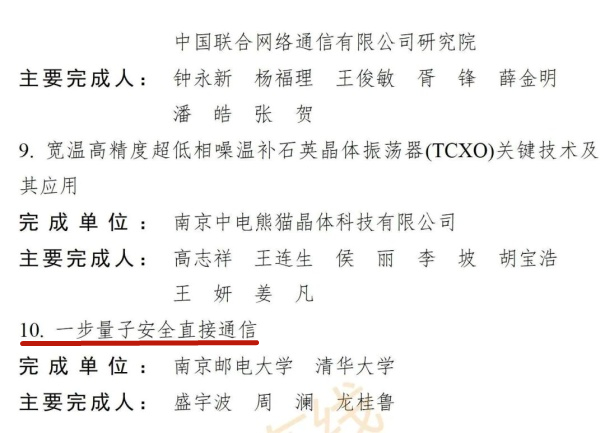12月2日,2022年度江蘇省行業領域十大科技進展、優秀科技進展項目公布,共70項成果入選十大科技進展、78項成果入選優秀科技進展。我校電子與光學工程學院、柔性電子(未來技術)學院盛宇波教授、理學院周瀾教授和清華大學物理系龍桂魯教授合作的“一步量子安全直接通信”項目入選電子信息領域優秀科技進展。項目論文發表在國內權威期刊Science Bulletin上,并獲授權專利1項。