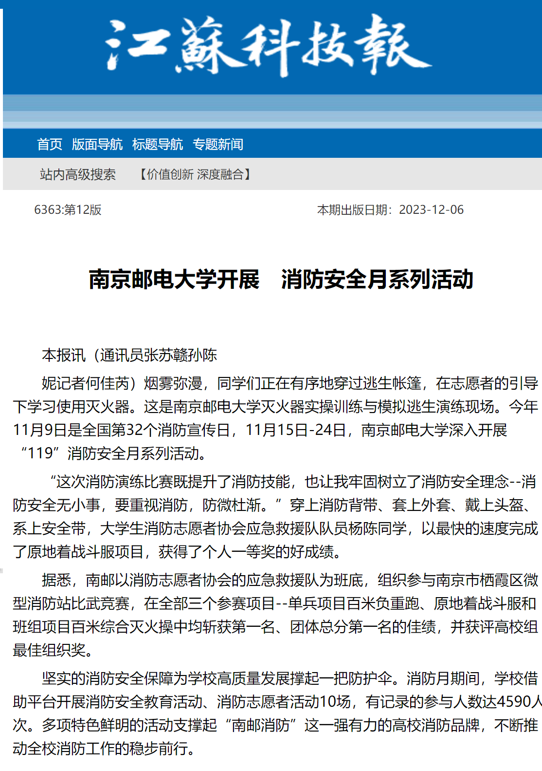 【江蘇科技報】南京郵電大學(xué)開展 消防安全月系列活動