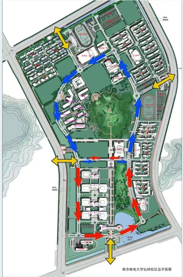 2.校內(nèi)環(huán)形主干道(文鼎路、鼎山東路、鼎山北路、鼎山西路)實(shí)施逆時(shí)針單向通行,鼎山南路實(shí)施雙向通行;