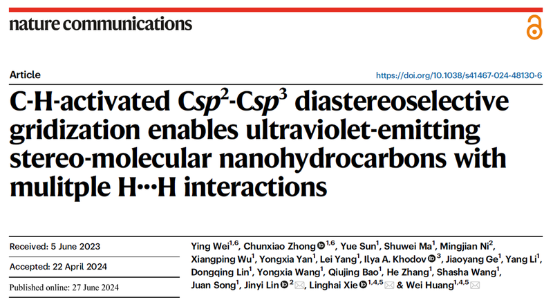 近日,南京郵電大學有機電子與信息顯示國家重點實驗室黃維院士、解令海教授團隊在有機納米烴(Organic NanoHydroCarbon, ONHCs)大環的設計、格子化合成及其寬帶隙紫外發光領域取得關鍵進展。相關成果以“C-H-activated Csp2-Csp3 diastereoselective gridization enables ultraviolet-emitting stereo-molecular nanohydrocarbons with mulitple H···H interactions”為題發表在Nature Communications(《自然?通訊》)上。魏穎副教授和鐘春曉博士為論文共同第一作者,林進義教授、解令海教授和黃維院士為共同通訊作者。