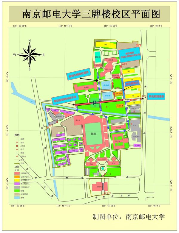 (1)南門、北門、東門均設(shè)新生進(jìn)校通道。