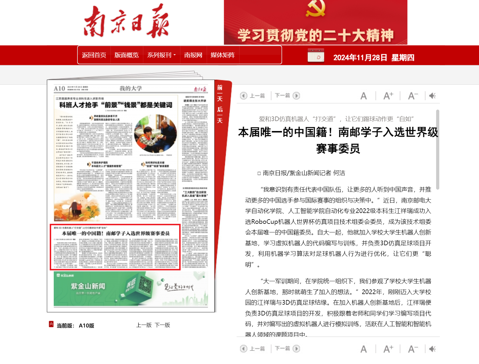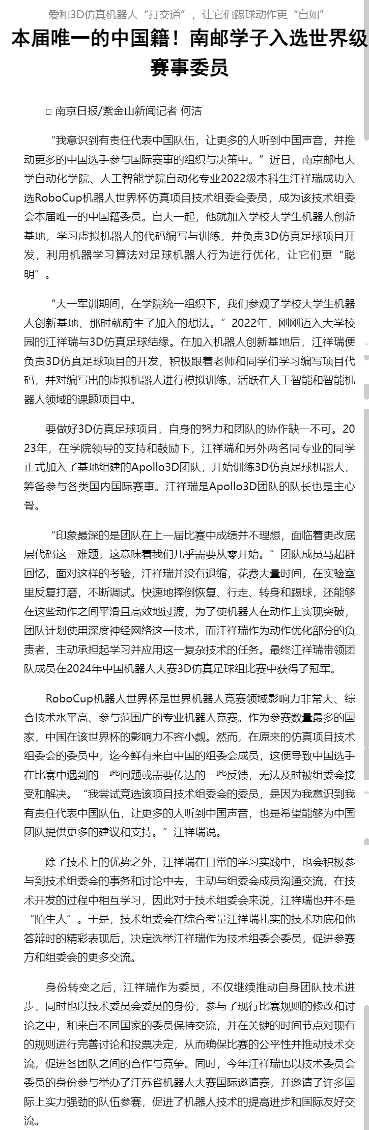 【南京日報】本屆唯一的中國籍!南郵學子入選世界級賽事委員