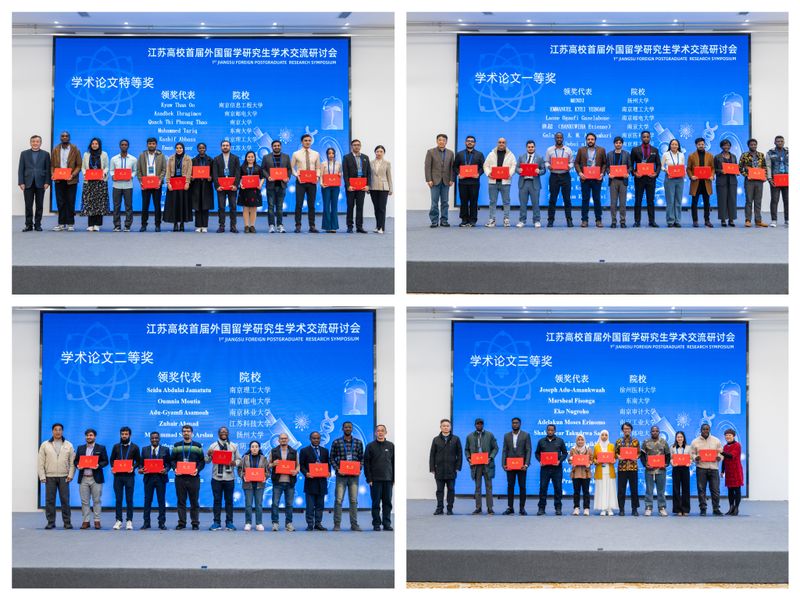 11月30日至12月1日,江蘇高校首屆外國留學研究生學術交流研討會在鎮江舉行。南郵留學生獲“學術論文獎”特等獎、一等獎、二等獎、三等獎各1項,學校榮獲“優秀組織獎”。