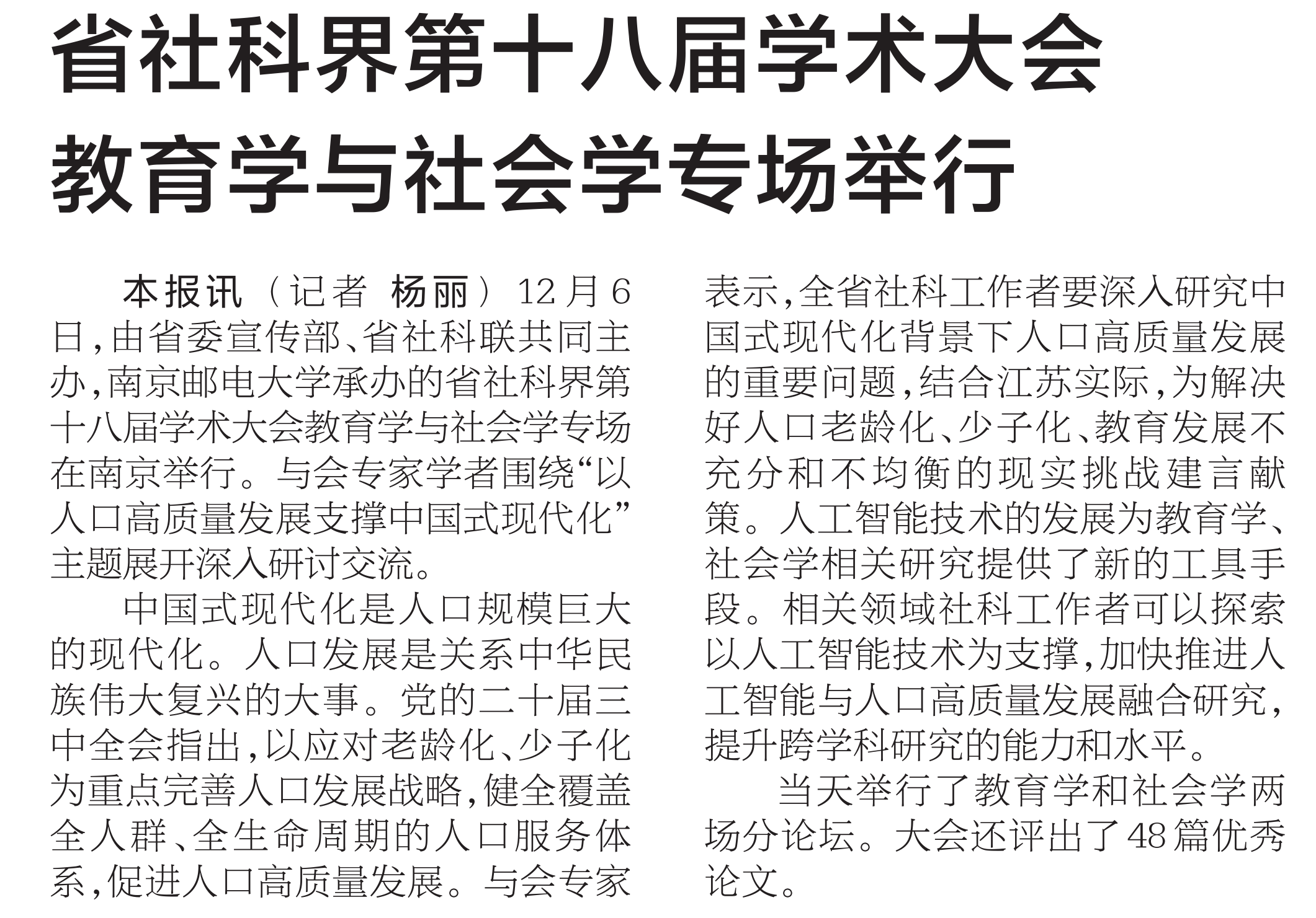【新華日報】省社科界第十八屆學術大會教育學與社會學專場舉行