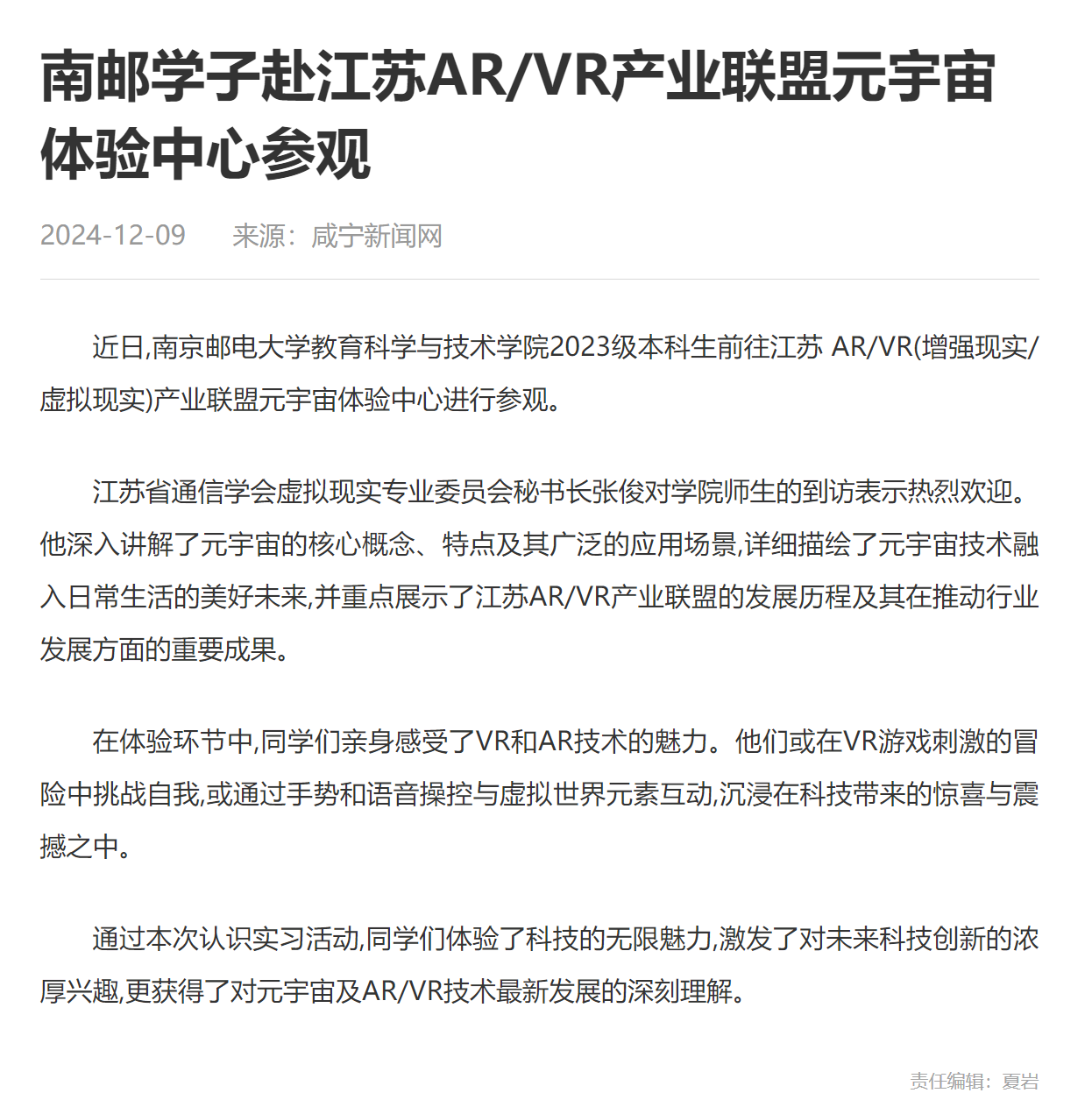 【中國網】南郵學子赴江蘇AR/VR產業聯盟元宇宙體驗中心參觀