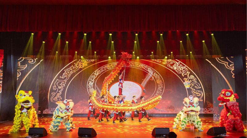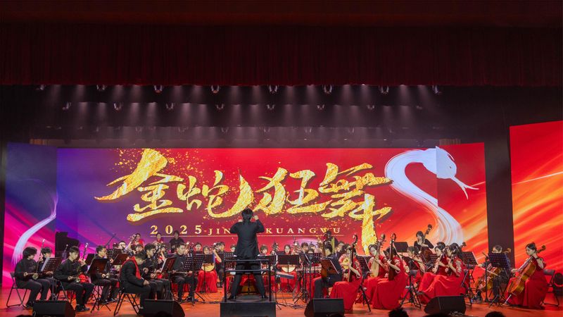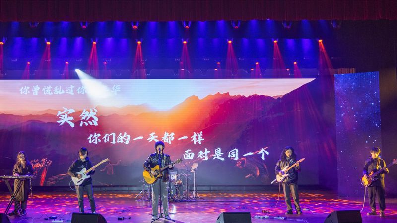 新年晚會以鏗鏘昂揚的新派龍獅秀《龍騰華夏》開場,氣勢磅礴的交響樂《激情燃燒的歲月》激發了學子的家國情懷,原創朗誦《這是一張怎樣的臉》歌頌了校友徐六保將青春與熱血奉獻給祖國邊防事業的感人事跡,原創合唱《青春燃燒的火種》等作品展現了學子們青春似火的蓬勃力量,舞蹈《石榴花開》勾勒出56個民族像石榴籽般凝心聚力、團結友愛的美好畫卷,搖滾樂隊帶來的《像夢一樣自由》等歌曲展現了青年們在充滿詩意與自由的狂野中努力奔跑的模樣。