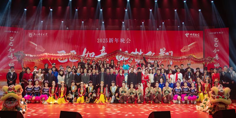 新年晚會是我校全面實施學校美育浸潤系列活動的重要組成部分,也是一場以紅色為底色的思政課,本次晚會演員共有212名,包含老中青三代南郵人(其中少數民族21人),晚會主創人員深挖和凝練紅色校史中蘊含的豐富思政元素,用感人至深的紅色校史故事編創文藝作品,以紅色資源“活教材”打造立德樹人“強磁場”,讓紅色信仰在師生心中駐足生根。