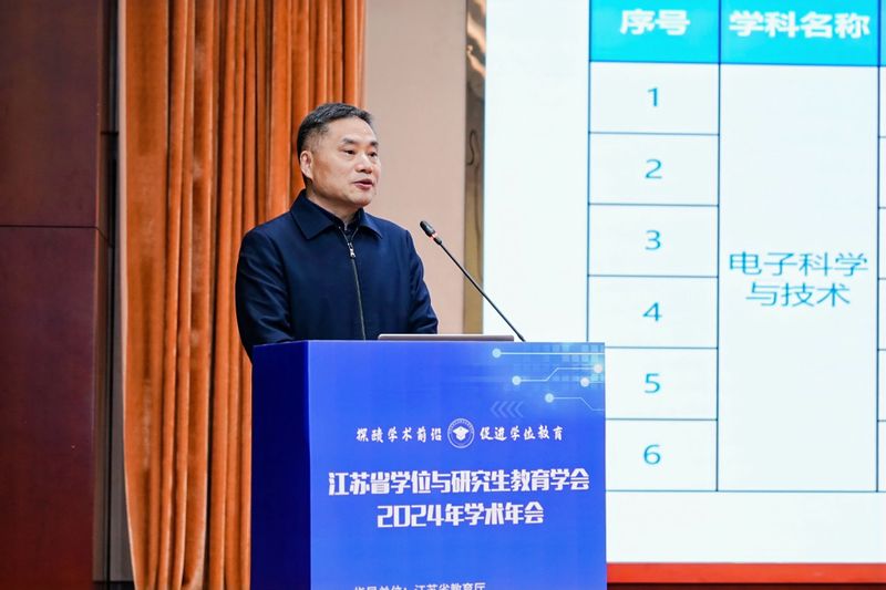 12月23日,江蘇省學位與研究生教育學會2024年學術年會開幕,來自全省高校的校領導、研究生教育指導委員會主任委員和委員代表、高校研究生院負責人、企業代表等300余人匯聚南京,圍繞“探賾學術前沿 促進學位教育”主題探討研究生教育時代的重要課題。校長葉美蘭、校黨委副書記蔣國平帶隊參加年會。