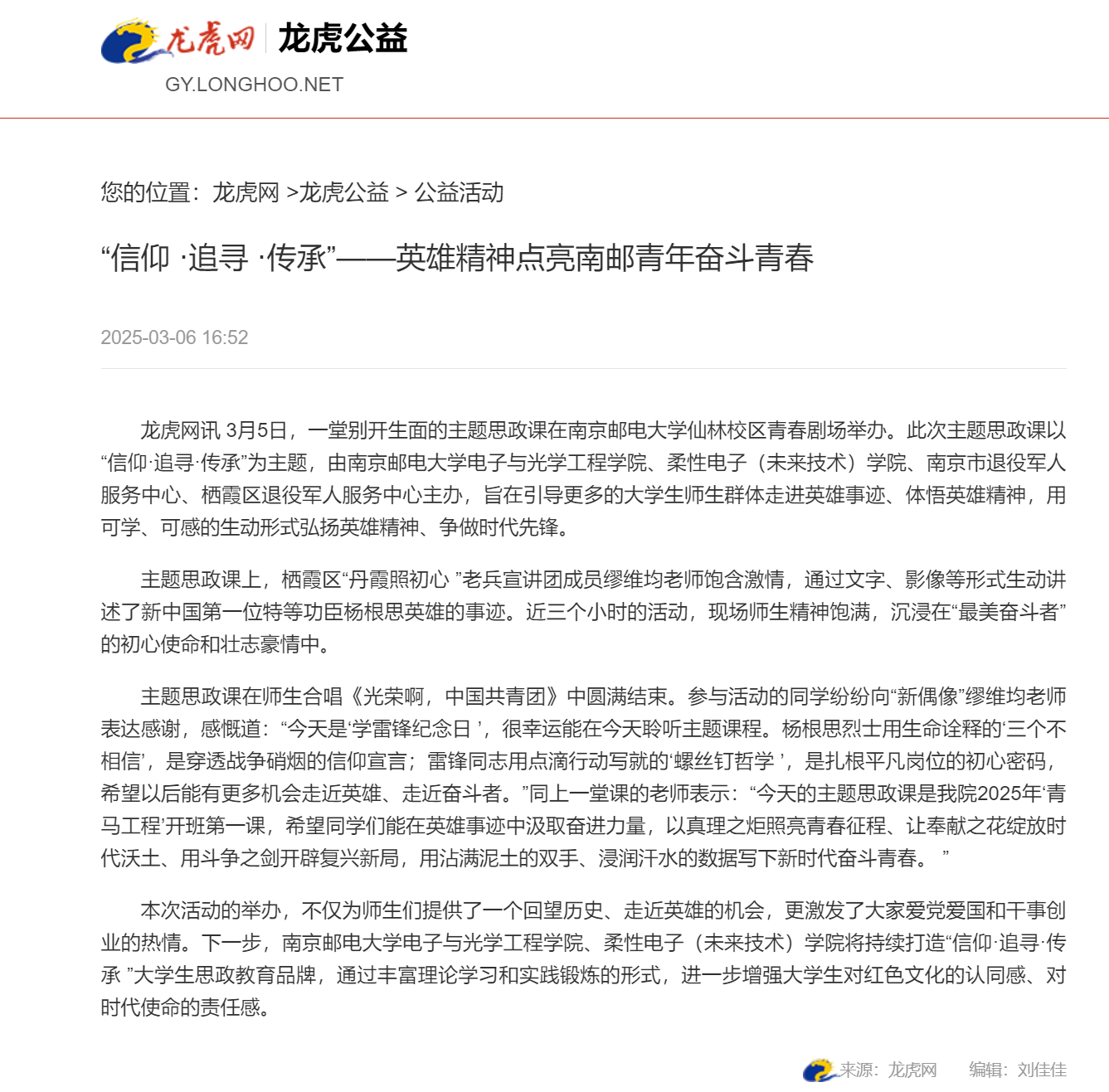【龍虎網(wǎng)】“信仰 ·追尋 ·傳承”——英雄精神點亮南郵青年奮斗青春