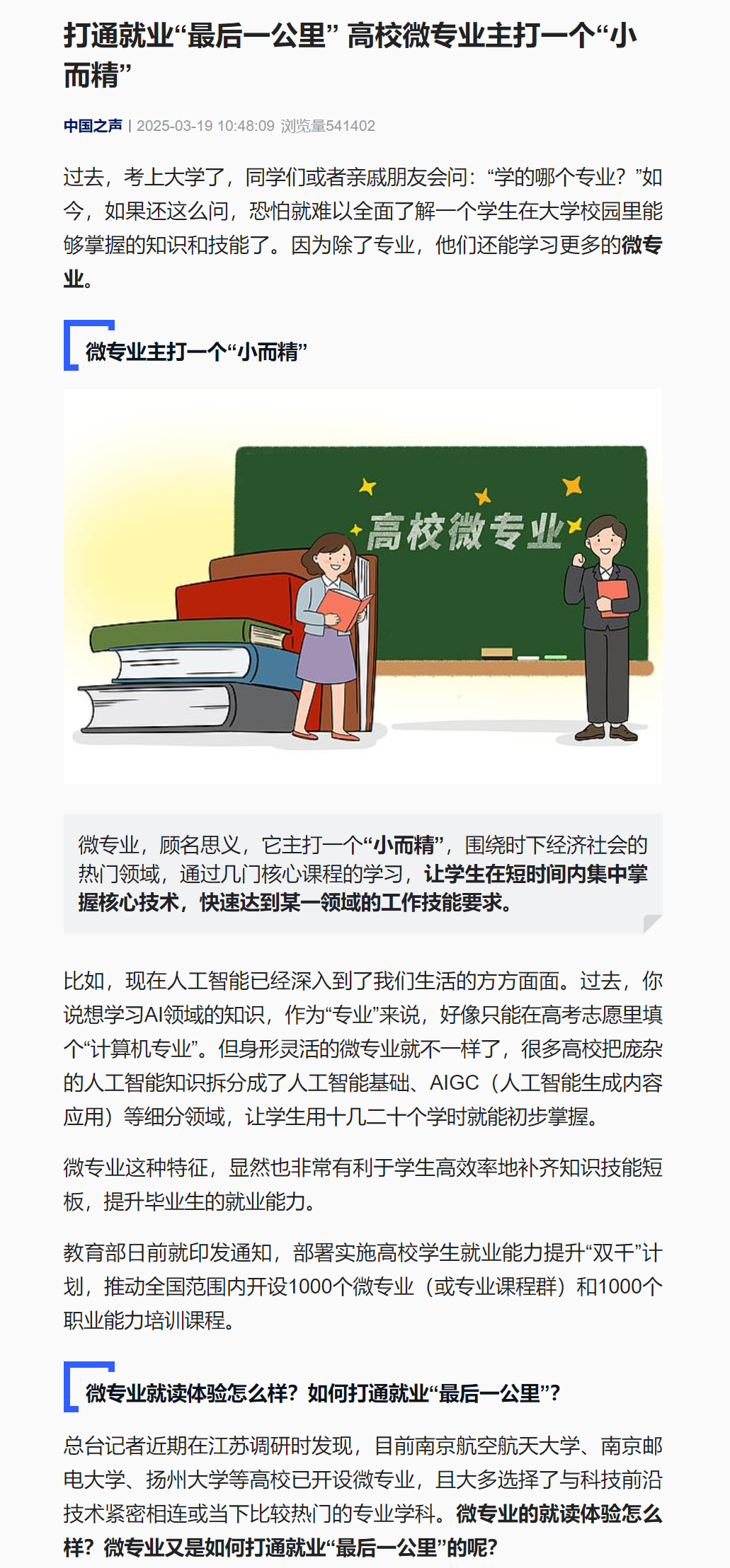 【央視新聞】打通就業“最后一公里” 高校微專業主打一個“小而精”