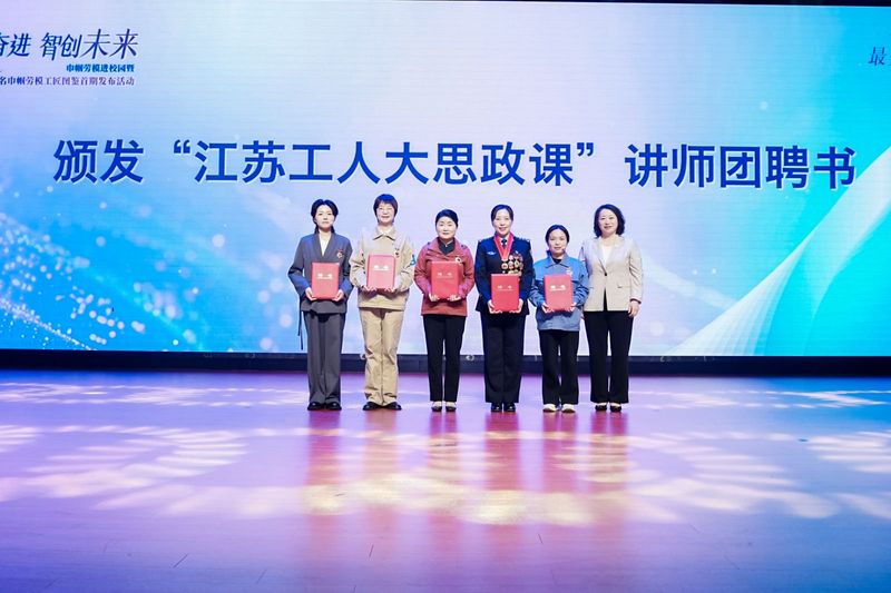 本次活動也是“江蘇工人大思政課-巾幗篇”的實踐現場,江蘇省總工會張迎春副主席為何光華等五位巾幗勞模代表頒發“江蘇工人大思政課”講師團聘書。這些“最美巾幗講師”將帶著她們的匠心、使命和情懷,走進機關、企業和廣大職工中,用巾幗勞模們的精神明燈,照亮更多人的前行之路。