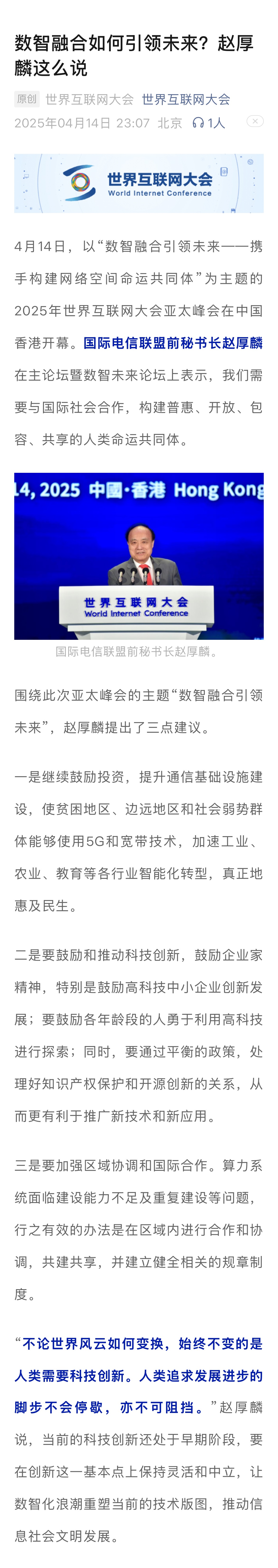 【世界互聯網大會】數智融合如何引領未來?趙厚麟這么說