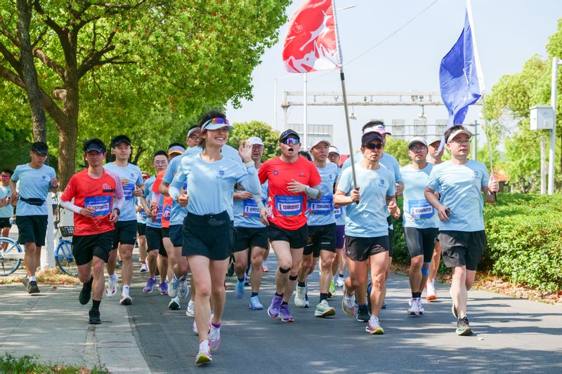 10時30分,葉美蘭校長打響校園跑發令槍。校領導、師生、校友以及中國銀行南京分行、江蘇電信、江蘇移動、江蘇聯通、江蘇鐵塔、江蘇郵政、江蘇有線、聯通物聯、華為、中興、江蘇互聯網協會、嘉環科技、澳江公司、數睿數據、恒隆通信、廣東電信設計院南京分院等企業代表沿著4.2公里的經典路線,途經中博湖、三好亭、戰郵廣場等標志性建筑與景觀,奮力奔跑。