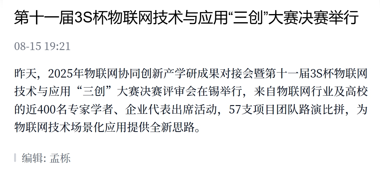 【無錫廣播電視臺】第十一屆3S杯物聯網技術與應用“三創”大賽決賽舉行