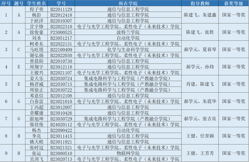 南京郵電大學2025年全國大學生電子設計競賽國家一等獎獲獎名單