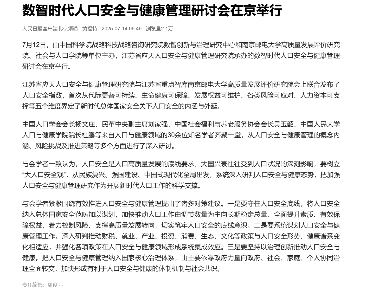 【人民日報客戶端】數智時代人口安全與健康管理研討會在京舉行
