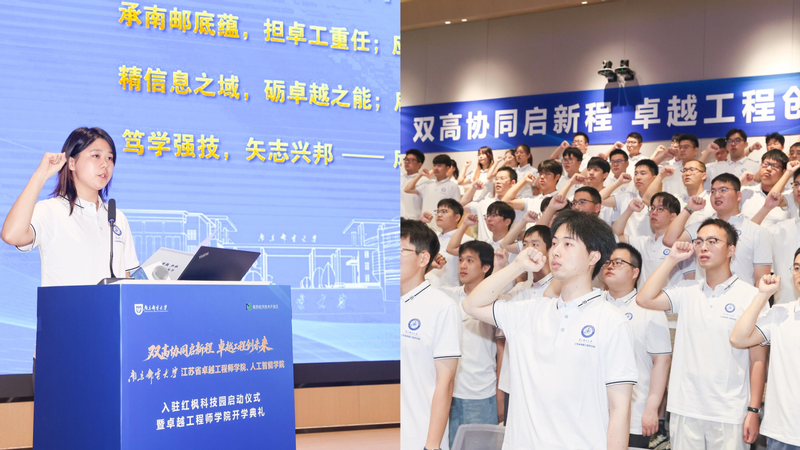 開學典禮上,卓工學院全體新生莊嚴宣誓:“承南郵底蘊,擔卓工重任;應產業之需,融產學研用……成卓越人才,為國家建功!”
