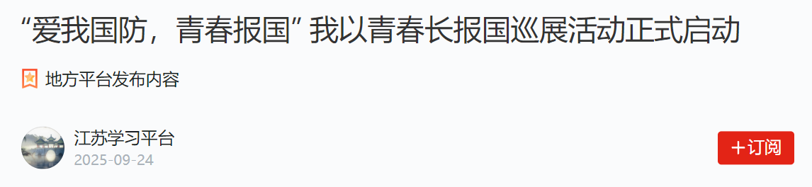 【學習強國】“愛我國防,青春報國”我以青春長報國巡展活動正式啟動
