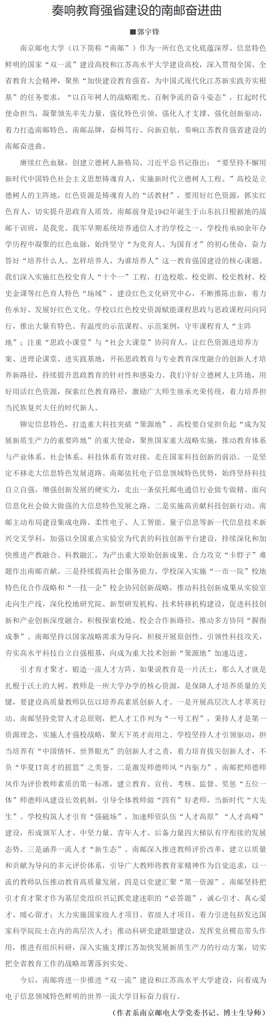 【江蘇教育報】奏響教育強省建設的南郵奮進曲