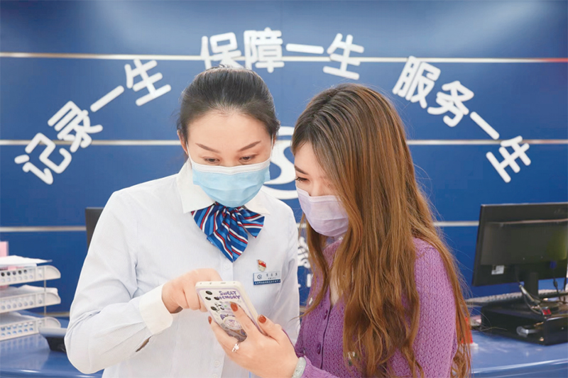 作為民生保障安全網(wǎng),社會(huì)保障能夠保障人們?cè)谀昀稀⑹I(yè)、患病、工傷、生育時(shí)的基本收入和基本醫(yī)療不受影響,消除后顧之憂。圖為天津社保中心武清分中心工作人員正協(xié)助參保人員辦理養(yǎng)老保險(xiǎn)關(guān)系轉(zhuǎn)移接續(xù)。 中國(guó)社會(huì)保障雜志社供圖 薛長(zhǎng)杰/攝