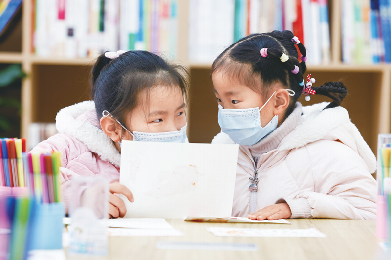加強對農村“三留守”人員等特殊和困難群體的關心關愛是社會救助工作的一項重要任務。寒假期間,江蘇省宿遷市泗洪縣瑤溝鄉招募志愿者,開辦留守兒童愛心托管班,為孩子提供免費的閱讀、學習、書畫創作環境。圖為2022年1月22日,在泗洪縣瑤溝鄉官塘社區新時代文明實踐站,參加愛心托管班的小朋友交流繪制的年畫。 新華社發 許昌亮/攝